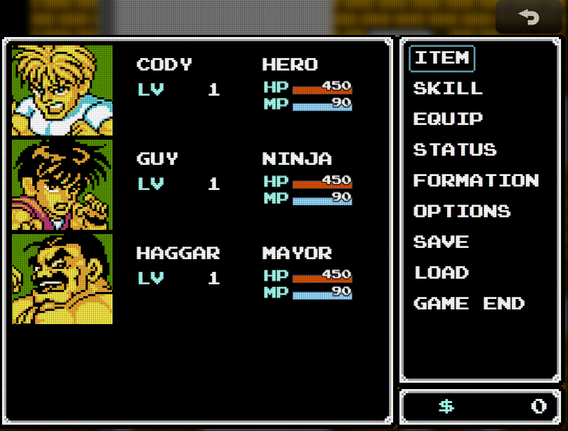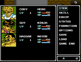 An Rpg version of the arcade classic Final fight, inspired in the said beat em up in the style of nes rpg . WIP